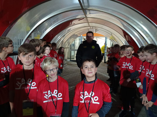 Die D-Junioren der JFG hatten das große Los gezogen und wurden als Einlaufkinder für diese Partie ausgewählt.