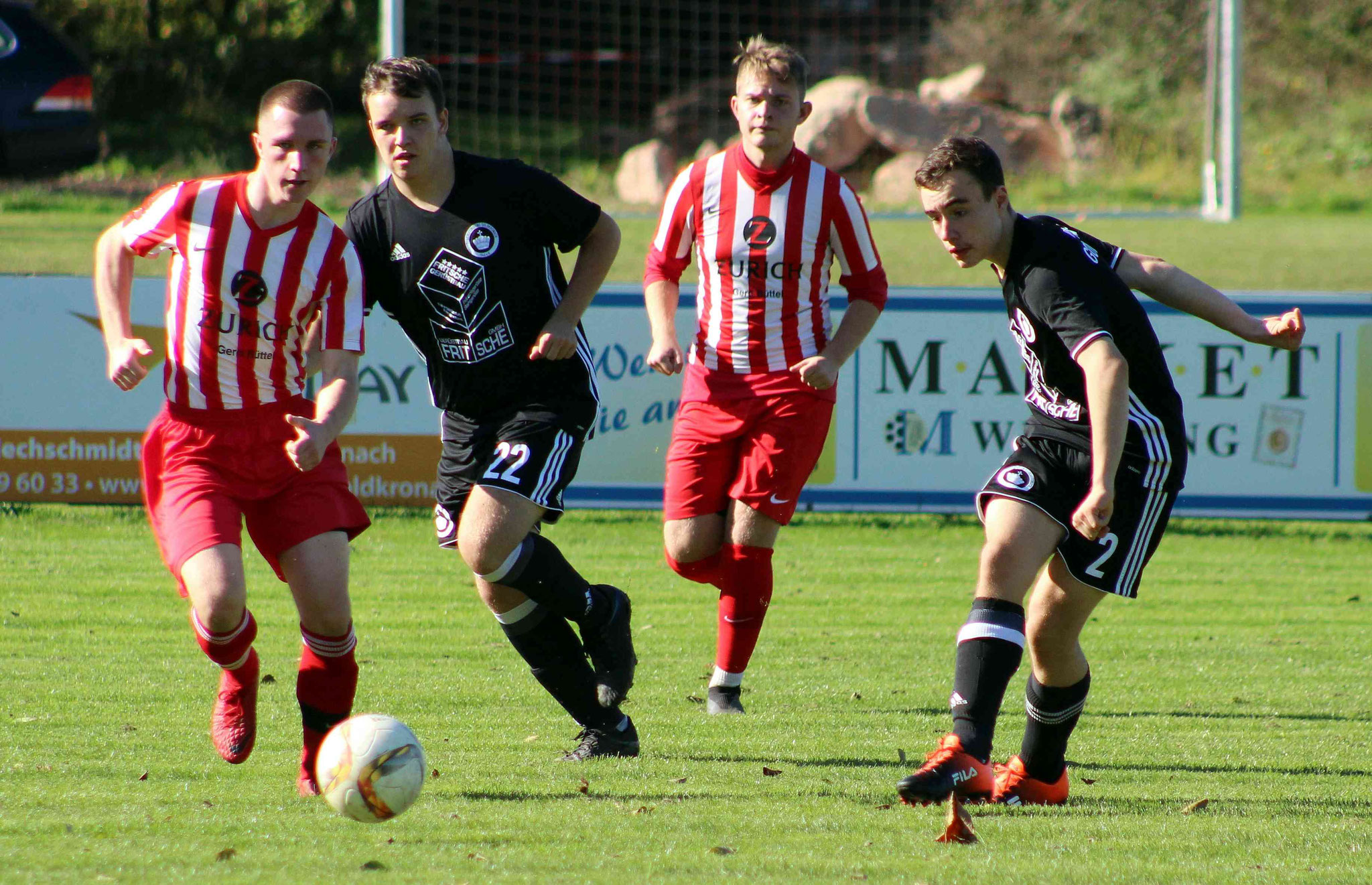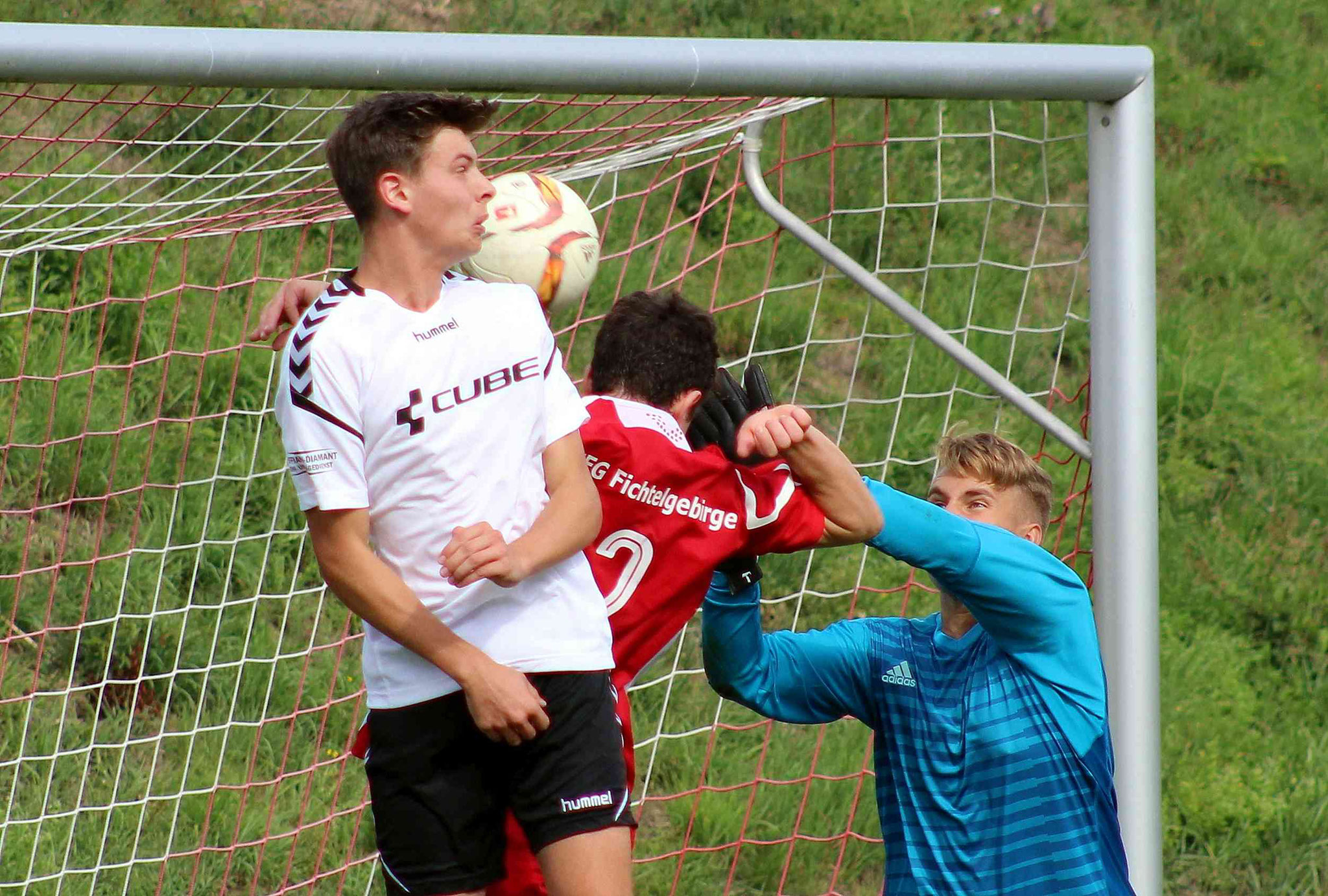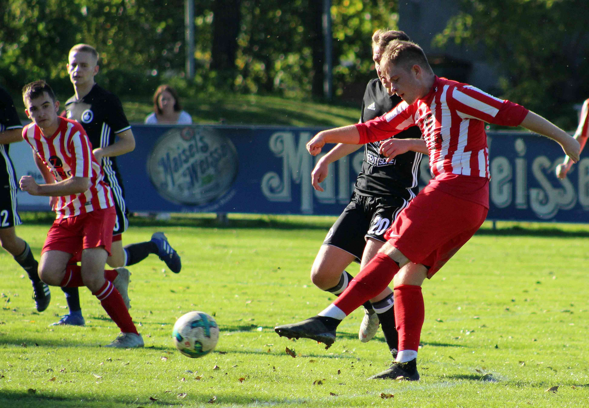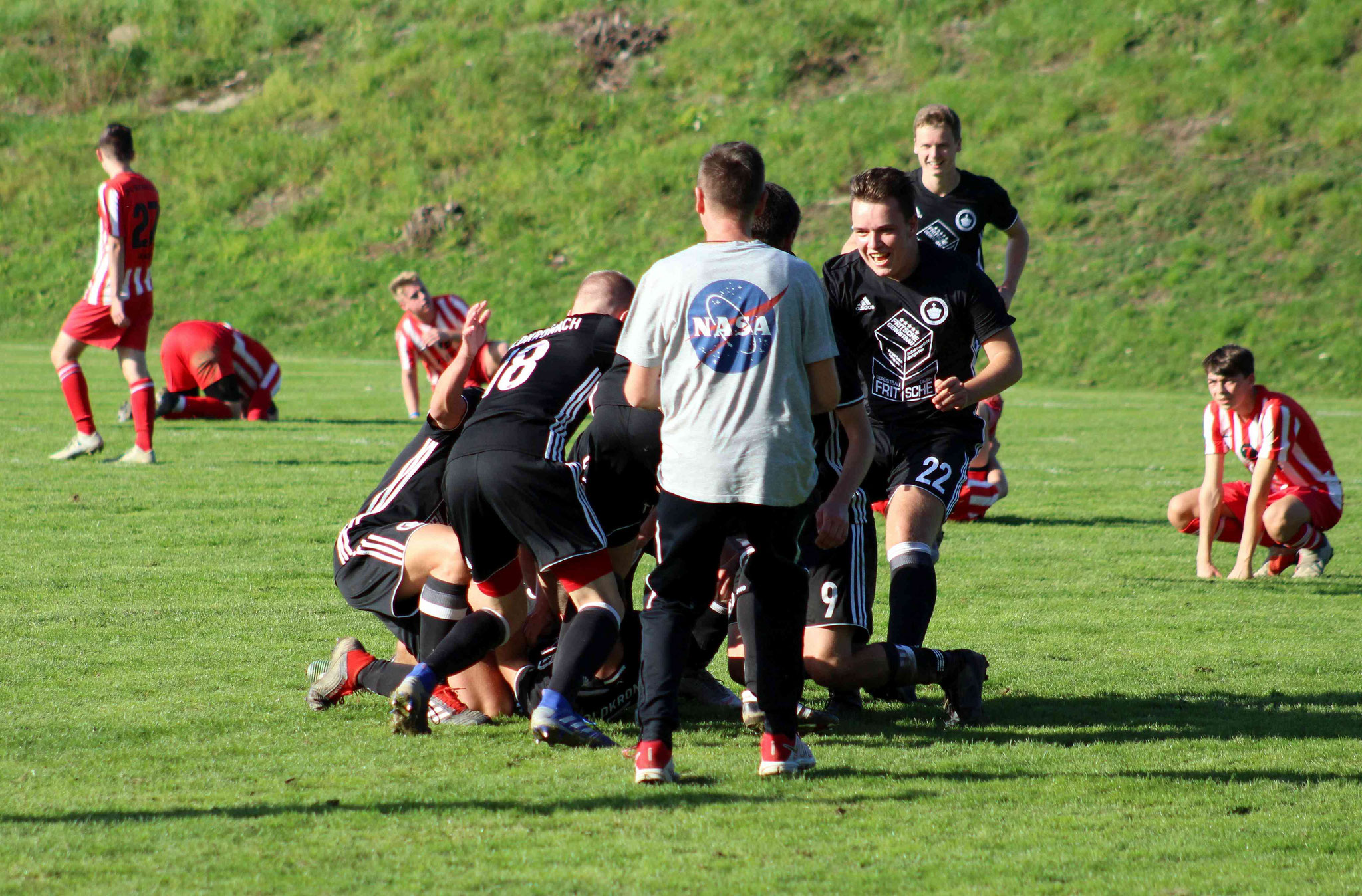 Gegen den Tabellenletzten aus Deichselbach war der erste Sieg eigentlich schon Pflicht. Doch bereits in der zweiten Minute kam die Ernüchterung für die Heimelf. Vollkommen frei an der Strafraumgrenze schlenzte Köhlein das Leder zum 0:1 in die Maschen. Doch die Fichtelgebirgler zeigten sich keineswegs geschockt und drei Minuten später nutzte Dominik Hüttner eine gute Hereingabe zum Ausgleich. Die erste Halbzeit war sehr ausgeglichen mit Chancen auf beiden Seiten. Als alle bereits an den Pausentee dachten, tankte sich Gästestürmer Bucher in den Strafraum und wurde von Jannick Albert unsanft von den Beinen geholt. Den fälligen Strafstoß verwandelte Köhlein mit seinem zweiten Treffer sicher. Mit Wut im Bauch kam die Regber-Elf aus der Kabine und gleich nach 120 Sekunden wurde Nico Weber auf die Reise geschickt. Alleine vor Torwart Kabitz erzielte Nico den erneuten Ausgleich. Auch die zweite Hälfte wurde von vielen Torraumszenen geprägt, wobei die Gastgeber mehr vom Spiel hatten. Zehn Minuten vor Ende der Partie wurde Jonah Drescher im 16er gefoult. Der Schiedsrichter zeigte sofort auf den Punkt. Da keiner so wirklich den Elfer ausführen wollte, schnappte sich Nico Weber den Ball und knallte diesen gegen die Querlatte. Aufgrund einiger Unterbrechungen ließ der Unparteiische mehrere Minuten nachspielen. So bekam die Heimmannschaft noch einen berechtigten Freistoß zugesprochen. Die Uhr zeigte 90 +4. Moritz Schmidt trat an und zirkelte die Kugel an der Mauer vorbei. Vom rechten Innenpfosten zum linken Innenpfosten und dann ab ins Netz zum glücklichen, aber letztendlich verdienten 3:2 Sieg. Jetzt einfach mal durchschnaufen! Bericht und Bilder von AS
