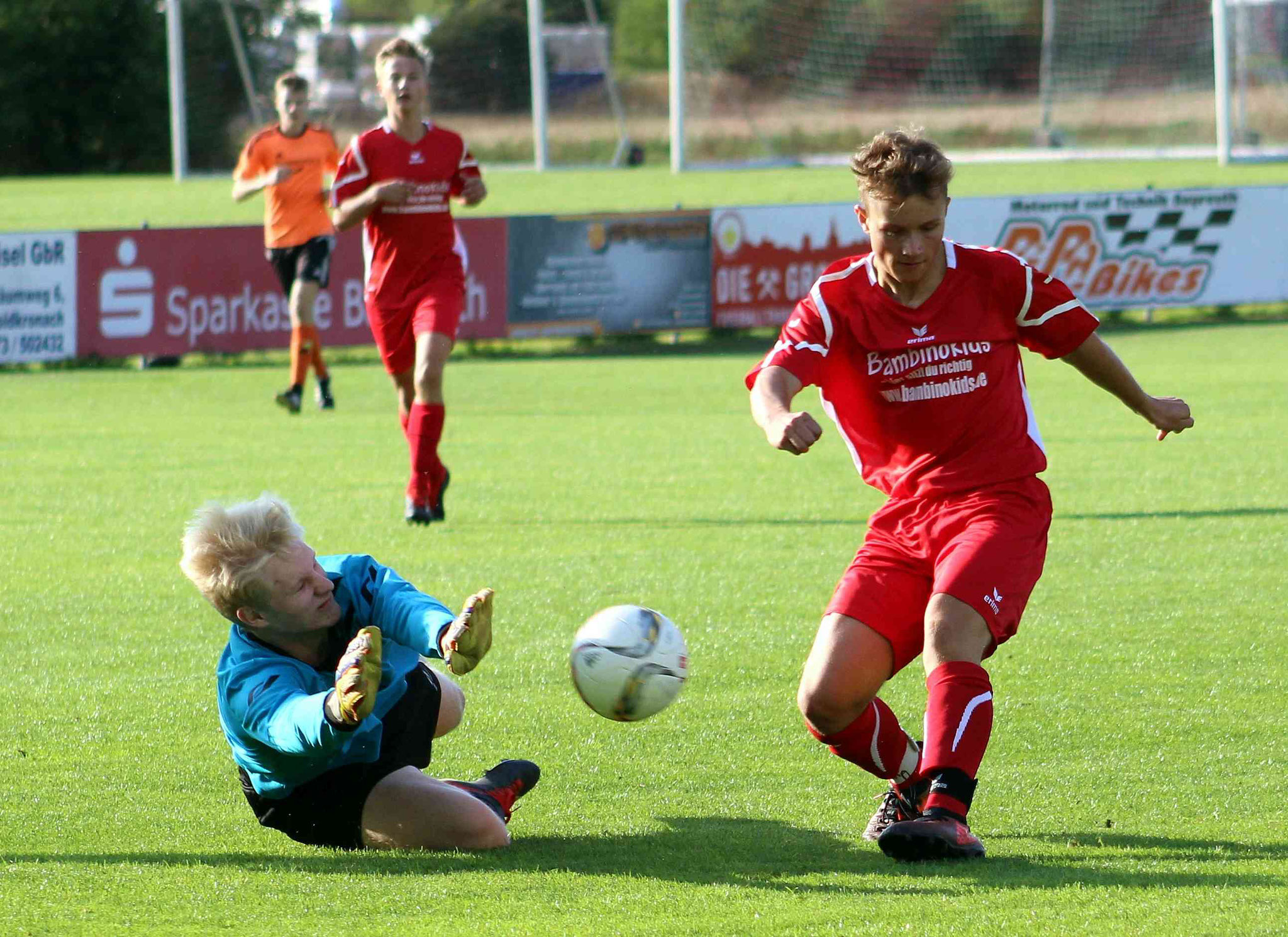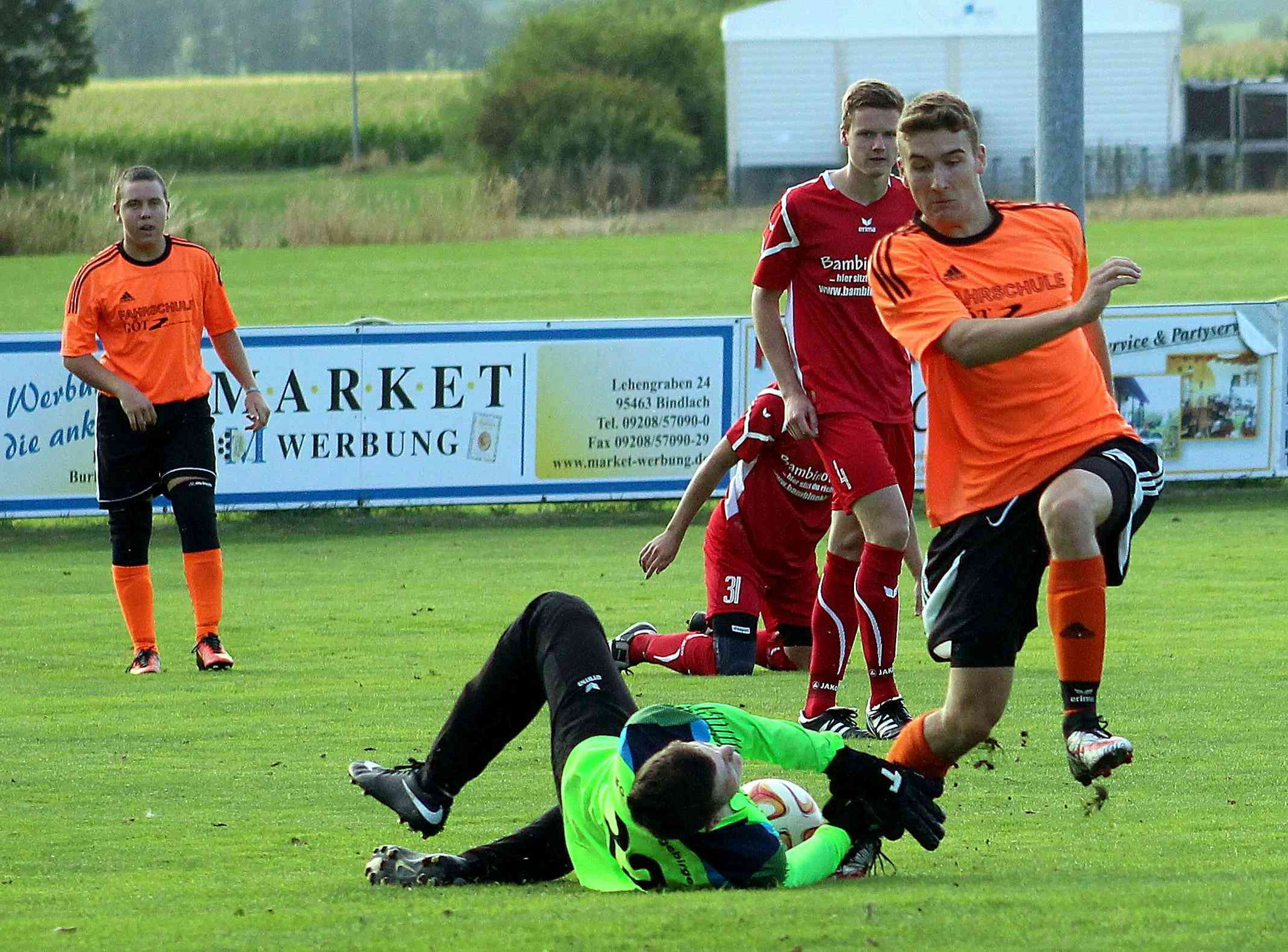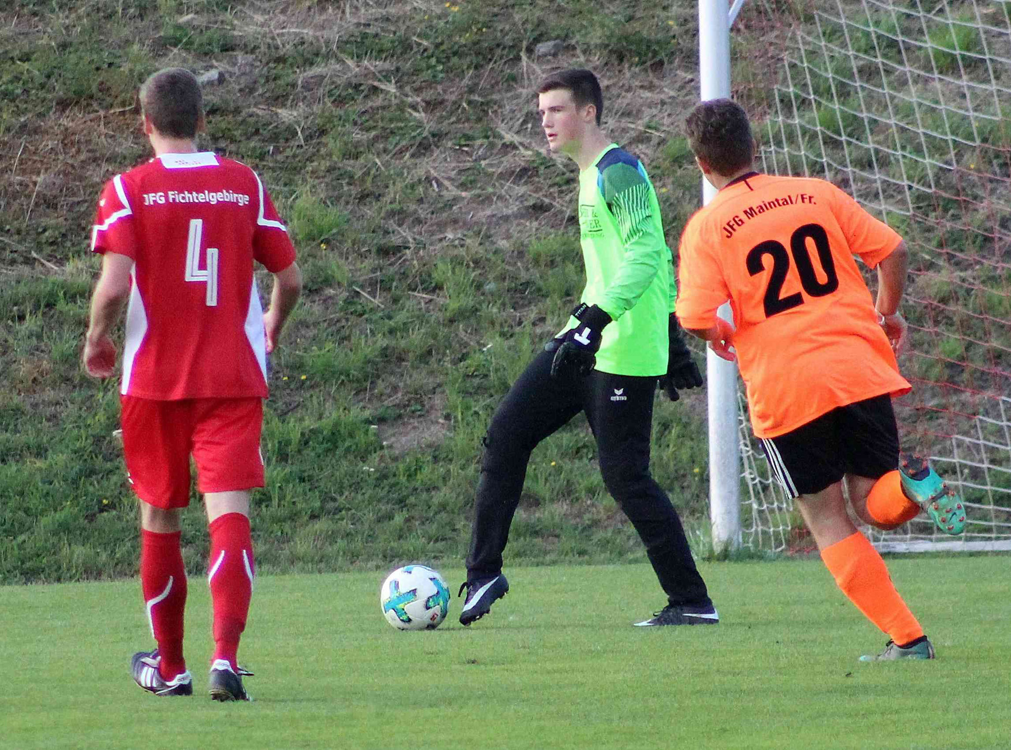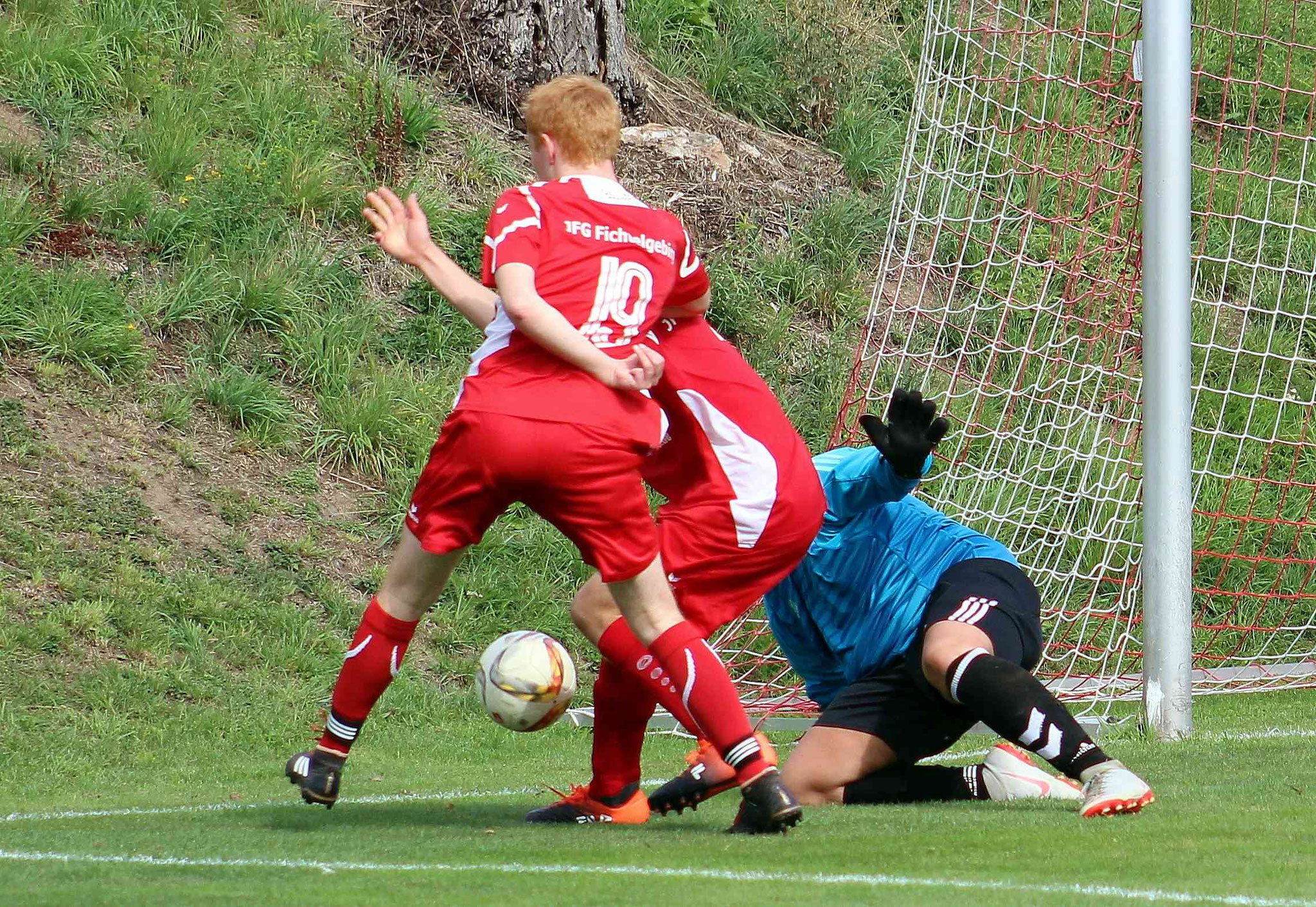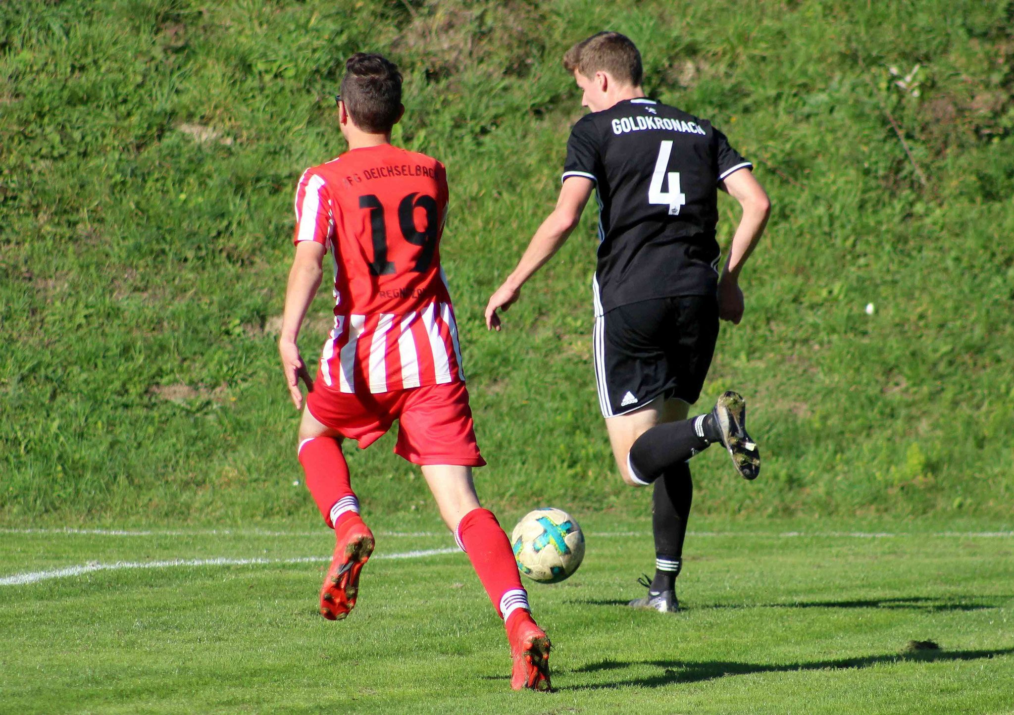 Gegen den Tabellenletzten aus Deichselbach war der erste Sieg eigentlich schon Pflicht. Doch bereits in der zweiten Minute kam die Ernüchterung für die Heimelf. Vollkommen frei an der Strafraumgrenze schlenzte Köhlein das Leder zum 0:1 in die Maschen. Doch die Fichtelgebirgler zeigten sich keineswegs geschockt und drei Minuten später nutzte Dominik Hüttner eine gute Hereingabe zum Ausgleich. Die erste Halbzeit war sehr ausgeglichen mit Chancen auf beiden Seiten. Als alle bereits an den Pausentee dachten, tankte sich Gästestürmer Bucher in den Strafraum und wurde von Jannick Albert unsanft von den Beinen geholt. Den fälligen Strafstoß verwandelte Köhlein mit seinem zweiten Treffer sicher. Mit Wut im Bauch kam die Regber-Elf aus der Kabine und gleich nach 120 Sekunden wurde Nico Weber auf die Reise geschickt. Alleine vor Torwart Kabitz erzielte Nico den erneuten Ausgleich. Auch die zweite Hälfte wurde von vielen Torraumszenen geprägt, wobei die Gastgeber mehr vom Spiel hatten. Zehn Minuten vor Ende der Partie wurde Jonah Drescher im 16er gefoult. Der Schiedsrichter zeigte sofort auf den Punkt. Da keiner so wirklich den Elfer ausführen wollte, schnappte sich Nico Weber den Ball und knallte diesen gegen die Querlatte. Aufgrund einiger Unterbrechungen ließ der Unparteiische mehrere Minuten nachspielen. So bekam die Heimmannschaft noch einen berechtigten Freistoß zugesprochen. Die Uhr zeigte 90 +4. Moritz Schmidt trat an und zirkelte die Kugel an der Mauer vorbei. Vom rechten Innenpfosten zum linken Innenpfosten und dann ab ins Netz zum glücklichen, aber letztendlich verdienten 3:2 Sieg. Jetzt einfach mal durchschnaufen! Bericht und Bilder von AS