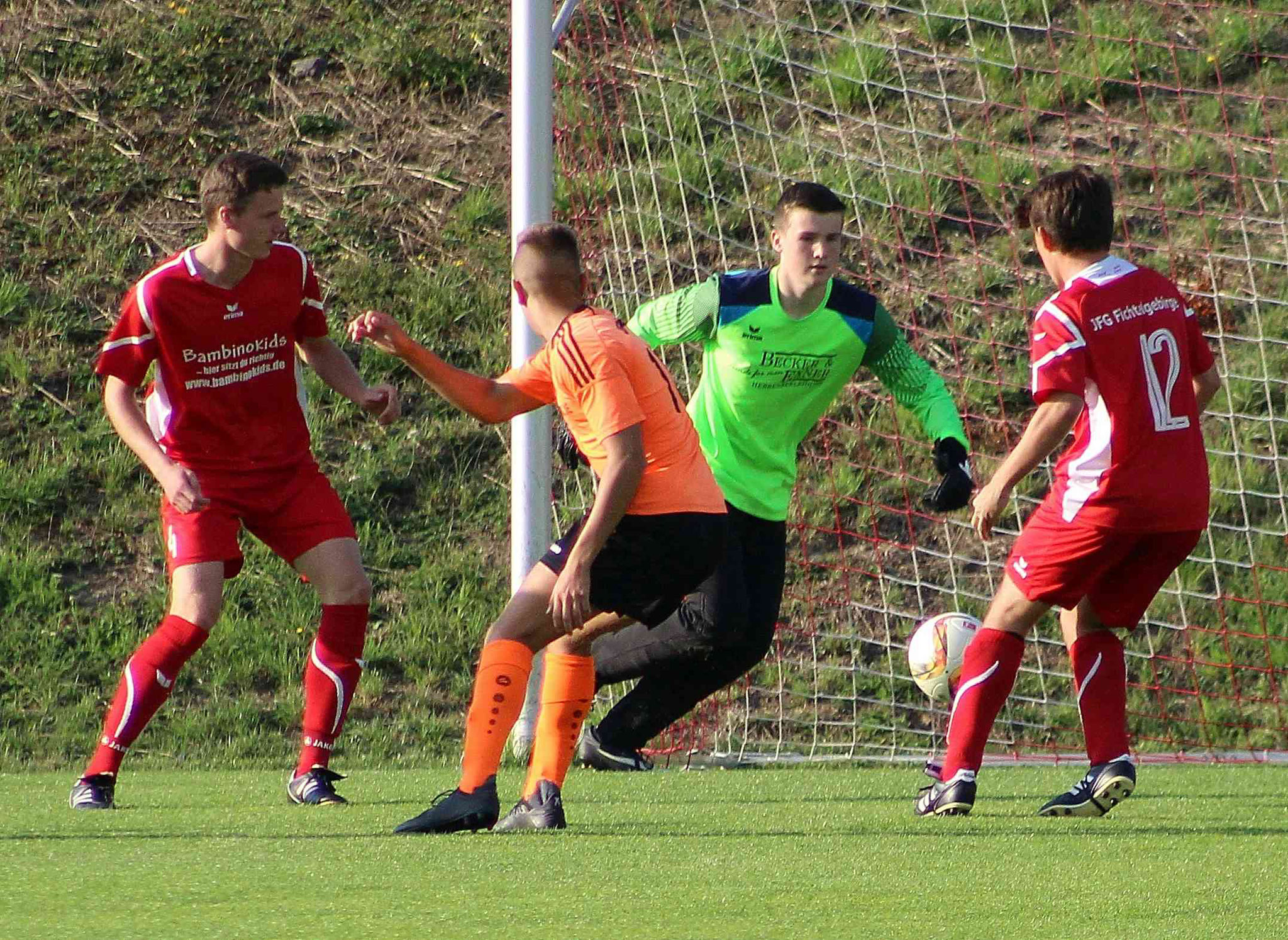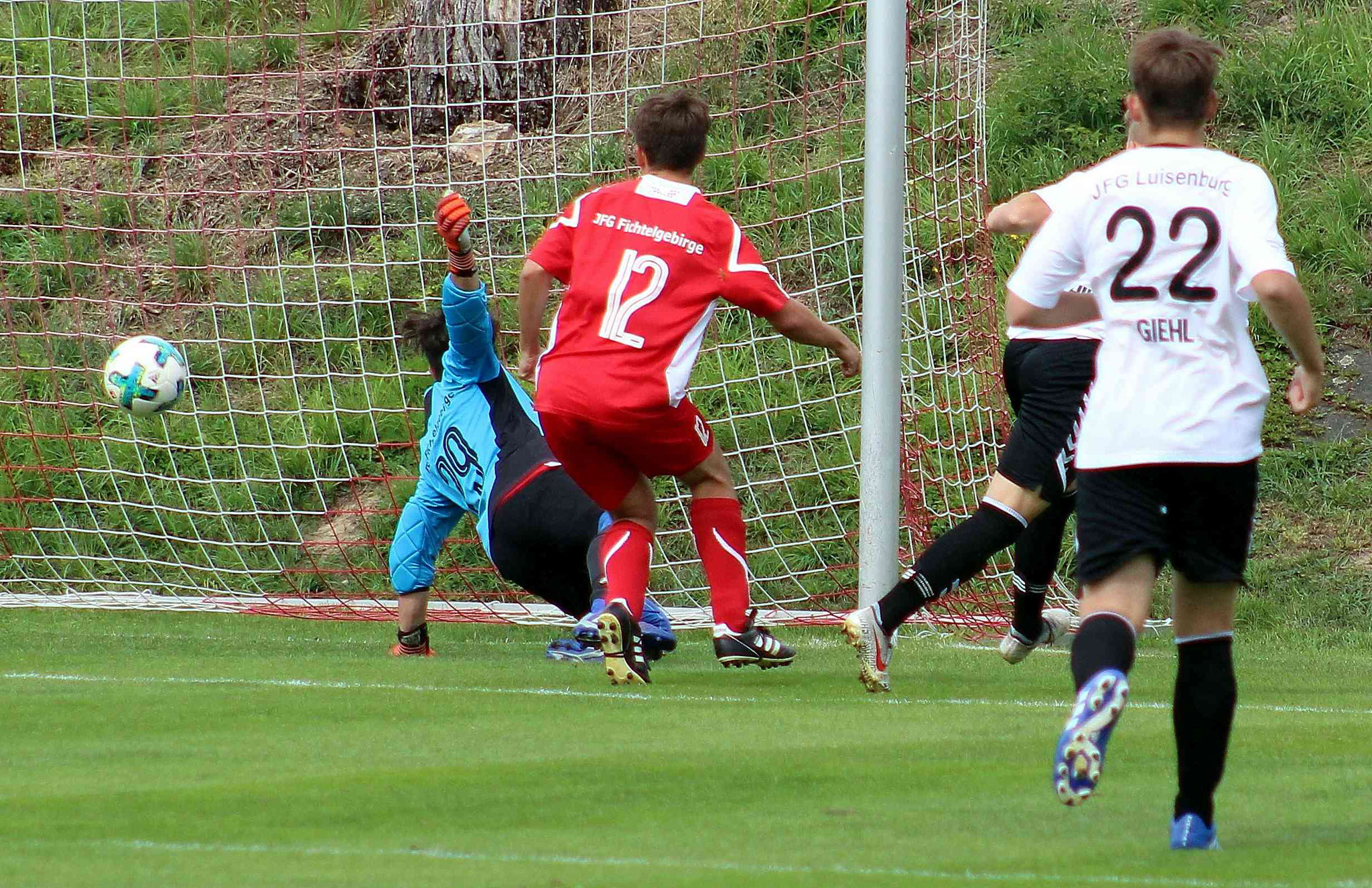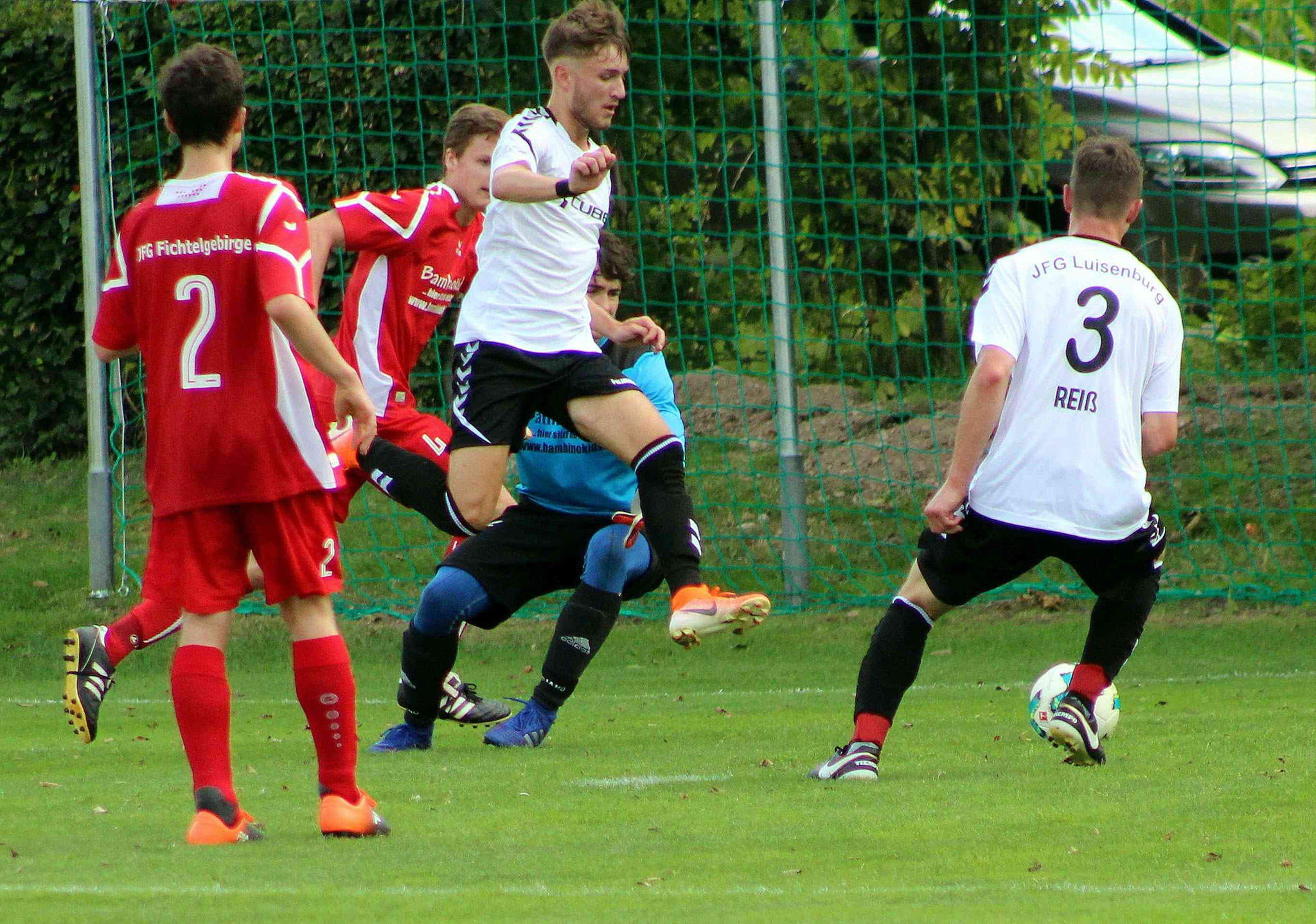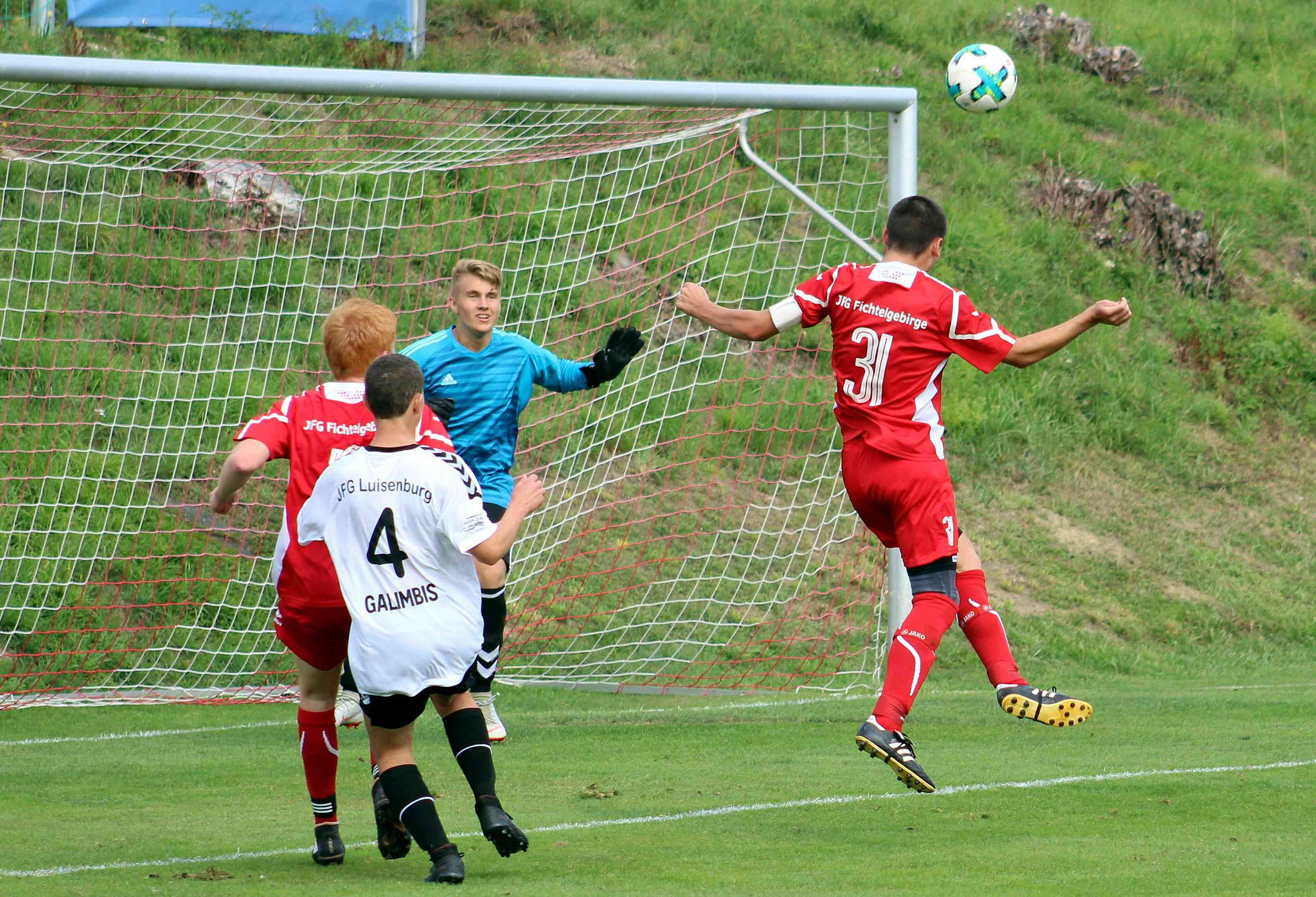 Anstoß durch die Heimelf – Ballverlust – Erster Angriff der Luisenburger – Tiefschlaf – 0:1 durch Hiltner in der ersten Minute. Das ging ja richtig gut los für die Regber-Elf. Nach zehn Minuten erwachten auch die Fichtelgebirgler und erspielten sich mehrere gute Einschussmöglichkeiten, die man nicht zum Ausgleich ummünzen konnte. Der Gast aus dem Wunsiedler Raum agierte hauptsächlich mit langen Bällen in die Spitze. So ging es mit 0:1 in die Pause. Nach Wiederanpfiff drängte das Heimteam auf den inzwischen überfälligen Ausgleich. In Minute 59. war es dann fast so weit, als Sebastian Ströber eine gute Flanke per Kopf in die Maschen bugsierte. Das Schiedsrichterteam erkannte den Treffer zwecks angeblicher Abseitsstellung nicht an. Extrem abseitsverdächtig war dann das Zuspiel auf Hiltner in der 68. Minute, das zum 0:2 führte. Die Heimelf gab nicht auf und berannte das Gästetor. Ein eigener Treffer sollte nicht fallen. In der 81. Minute machten die Grünerschützlinge durch Zant den Deckel zum 0:3 drauf. Es war eine ausgeglichene Partie mit leichten Feldvorteilen für die JFG Fichtelgebirge. Die desolate Chancenverwertung und die Schläfrigkeit in der Defensive kostet den Punkt. Jetzt heißt es Mund abputzen und weiter. Nächsten Sonntag geht es zum TSV Staffelstein.