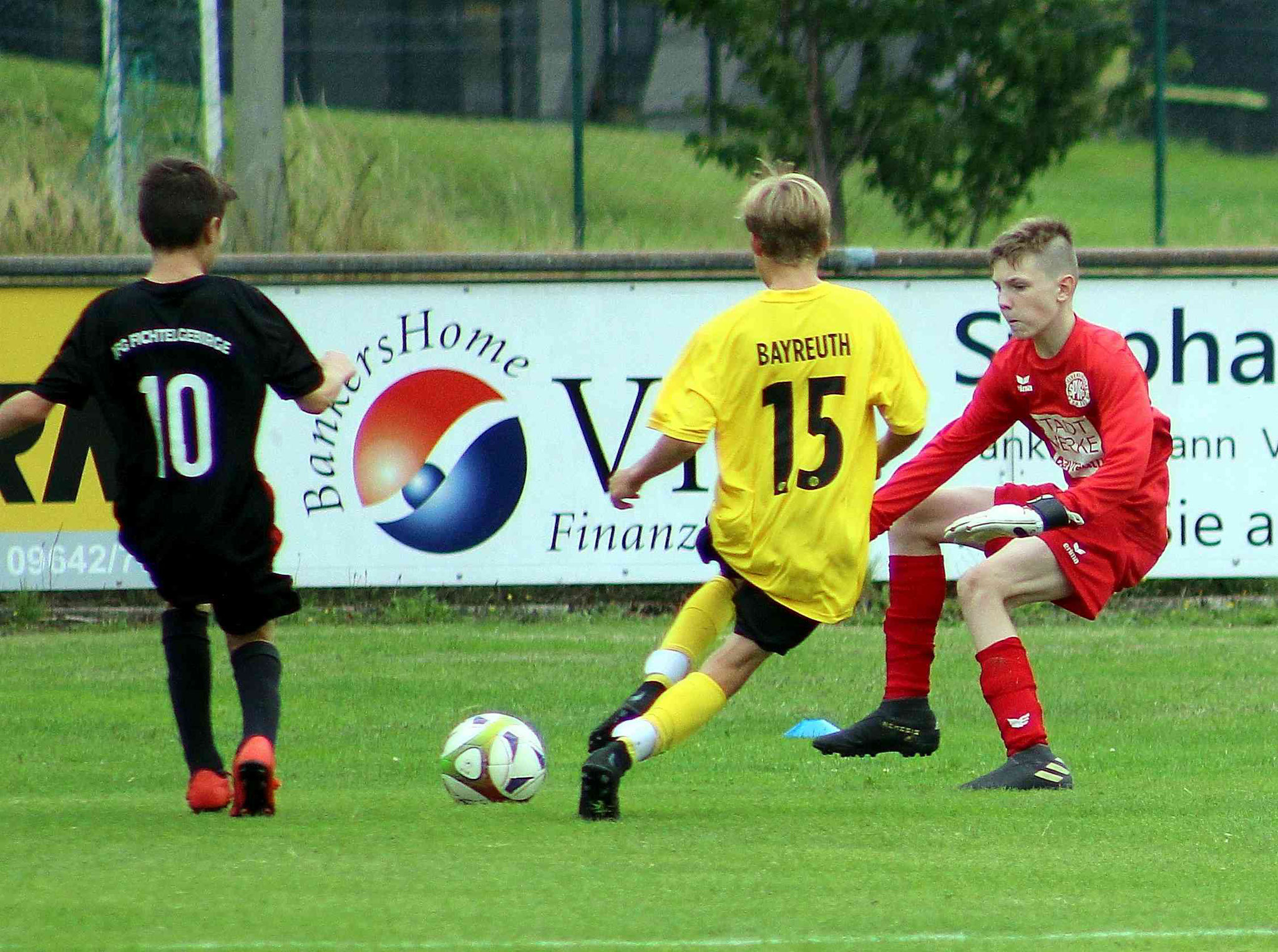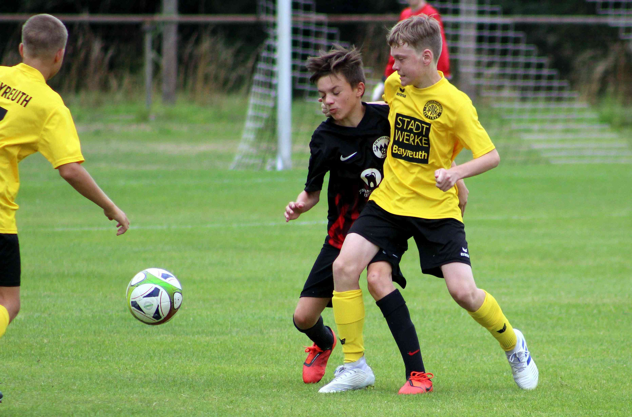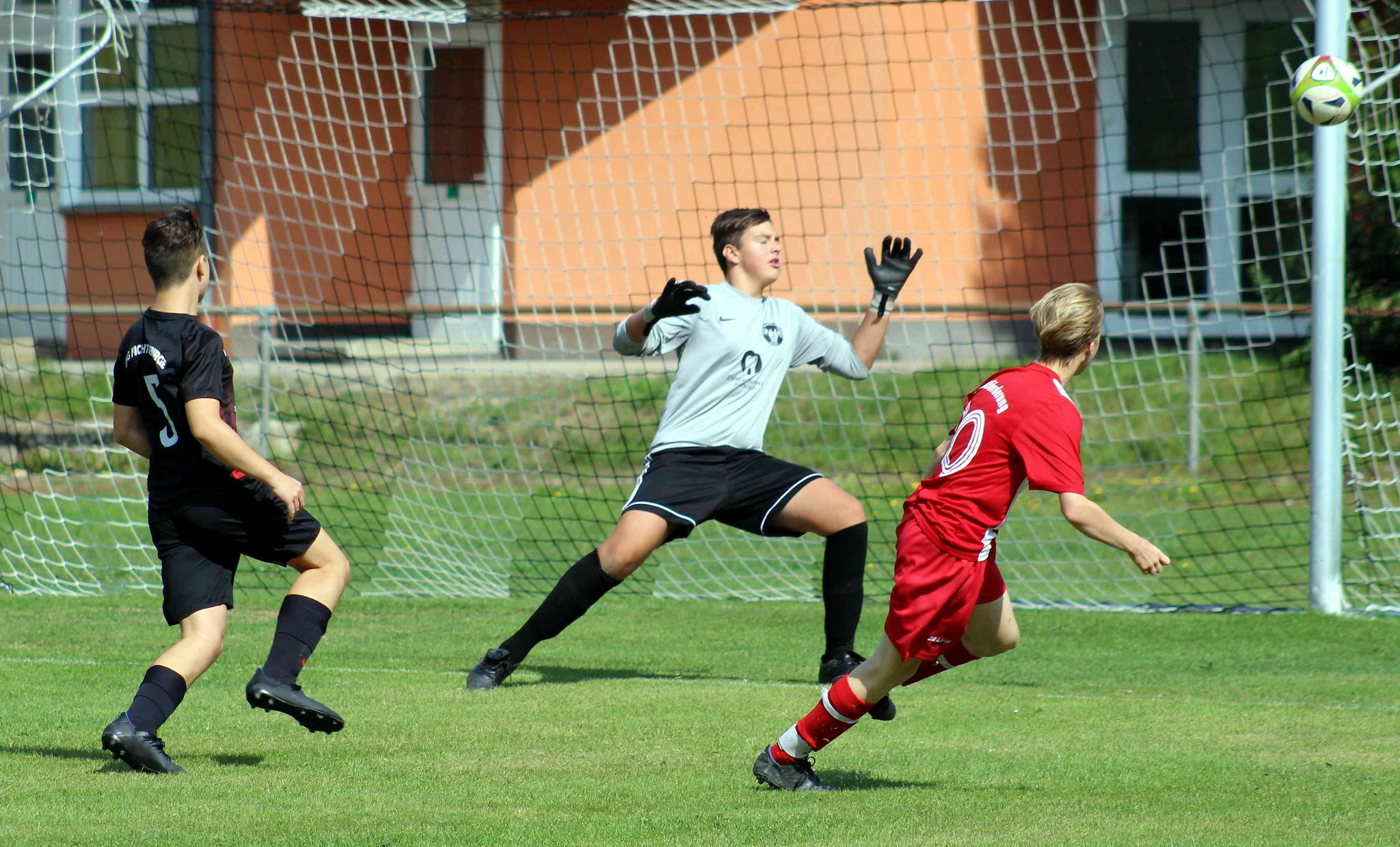 Als Tabellenführer nach dem ersten Spieltag empfing man den Tabellendritten, die (SG) Sportring Bayreuth. Es ging los wie die Feuerwehr, da die Gäste geschickt das Mittelfeld zustellten und die Heimelf früh attackierte. Die Wagnerstädter erspielten sich mehrere Torchancen, die aber teilweise kläglich vergeben wurden. Zwei Fehler beim Spielaufbau in der Verteidigung nutzte die Gareis-Elf und ging nach knapp 25 Minuten mit 2:0 in Front. Trainer Peer Beuth reagierte und stellte die Abwehr um. Das brachte mehr Sicherheit und die Fichtelgebirgler erspielten sich einige Chancen. Den 1:2 Anschlusstreffer in der 28. Minute erzielte Jakob Fuchs durch eine sehenswerte Aktion. Den erlaufenden Ball an der gegnerischen Torauslinie stoppend, dann in den 16er zog und im spitzem Winkel mit einem Heber vollendete. So ging es in den Pausentee. Die Beuth-Truppe war dran. In der zweiten Hälfte merkte man gleich, das die reifere Spielanlage und die Laufbereitschaft bei den Gästen höher war. Selbst beste Torgelegenheiten wurden ausgelassen oder unser Torwart parierte. Es kam, wie es kommen musste. Die beiden Tore zum 1:4 Endstand fielen bei dieser Überlegenheit doch noch. Die Heimmannschaft hat gekämpft, aber der Gegner war über weite Strecken ganz einfach besser. Glückwunsch zum Sieg an die (SG) Sportring. Für uns gilt jetzt Mund abwischen und nach vorne schauen. Am Mittwoch geht es bereits im Bau-Pokal zur JFG Jura Oberfranken Hollfeld und am Samstag treten wir die Reise zur JFG Steigerwald 2 an.