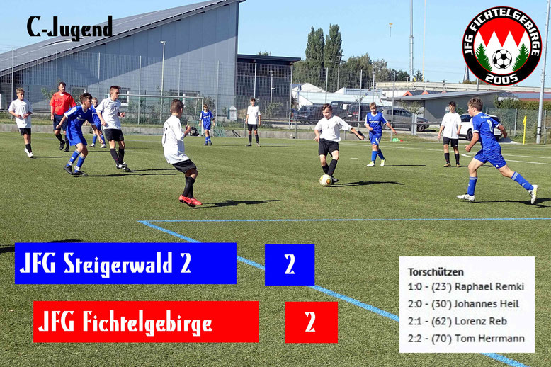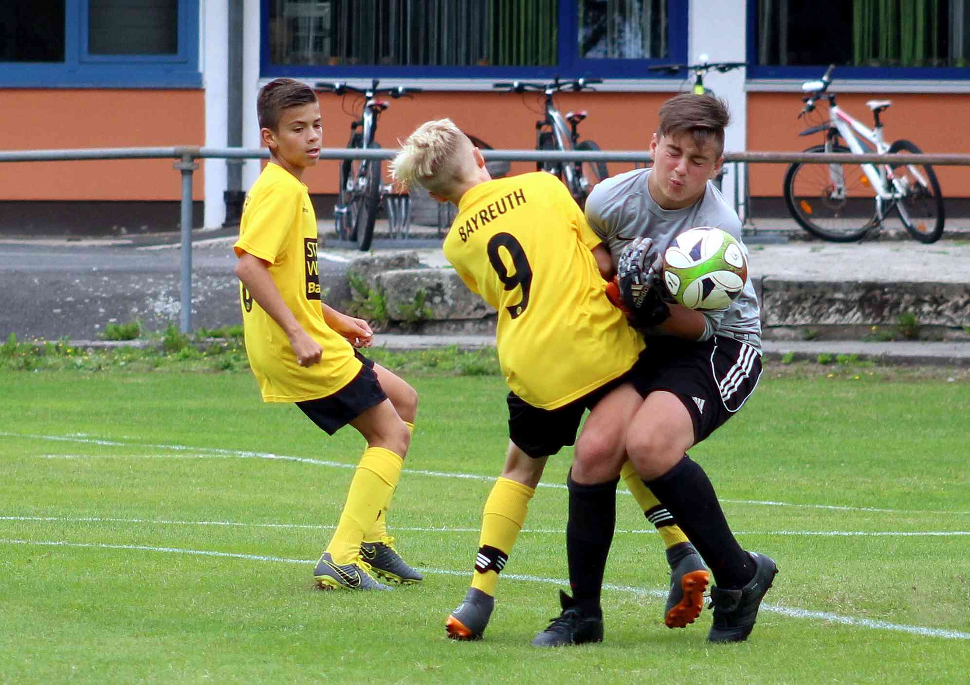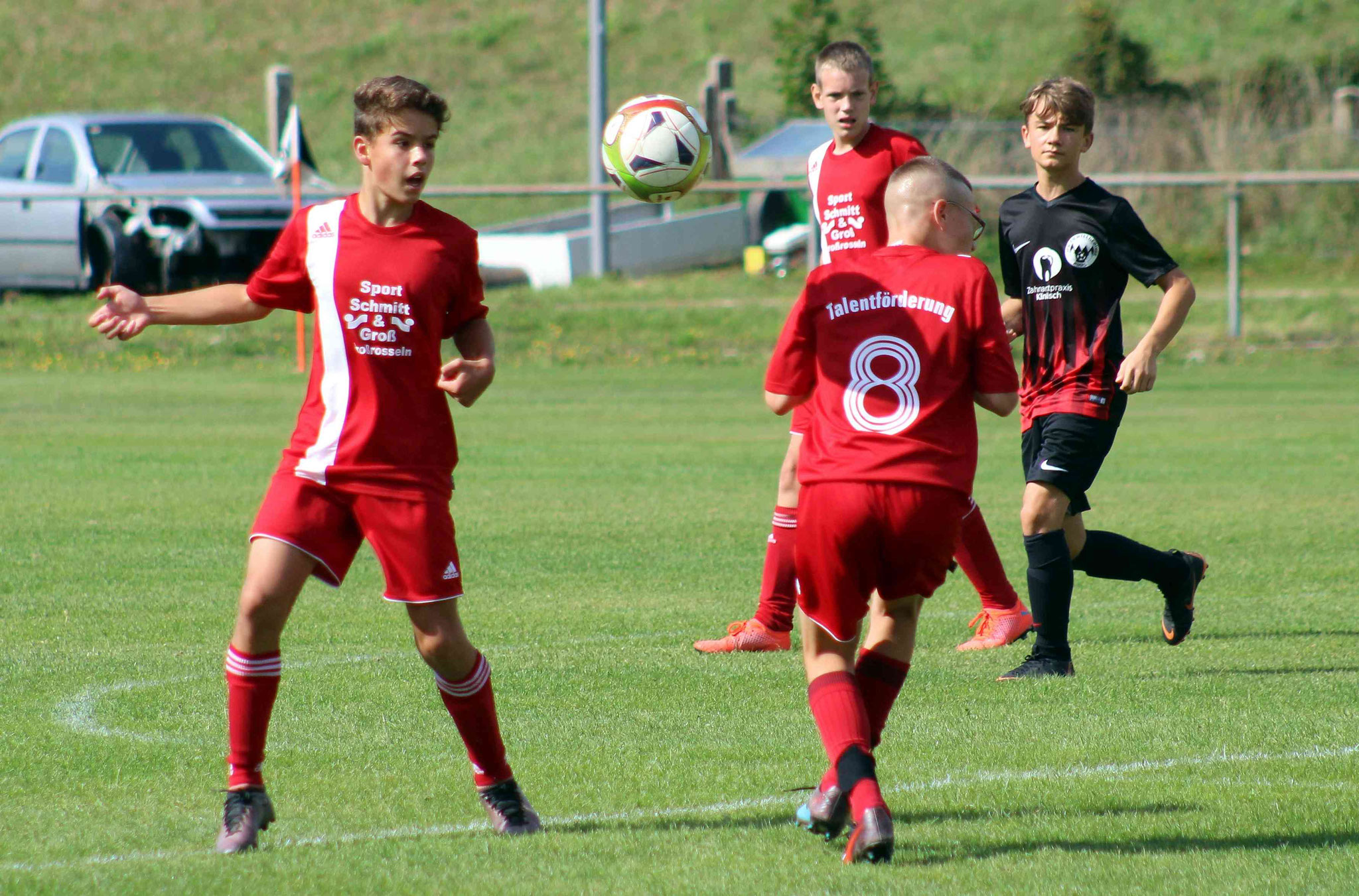Als Tabellenführer nach dem ersten Spieltag empfing man den Tabellendritten, die (SG) Sportring Bayreuth. Es ging los wie die Feuerwehr, da die Gäste geschickt das Mittelfeld zustellten und die Heimelf früh attackierte. Die Wagnerstädter erspielten sich mehrere Torchancen, die aber teilweise kläglich vergeben wurden. Zwei Fehler beim Spielaufbau in der Verteidigung nutzte die Gareis-Elf und ging nach knapp 25 Minuten mit 2:0 in Front. Trainer Peer Beuth reagierte und stellte die Abwehr um. Das brachte mehr Sicherheit und die Fichtelgebirgler erspielten sich einige Chancen. Den 1:2 Anschlusstreffer in der 28. Minute erzielte Jakob Fuchs durch eine sehenswerte Aktion. Den erlaufenden Ball an der gegnerischen Torauslinie stoppend, dann in den 16er zog und im spitzem Winkel mit einem Heber vollendete. So ging es in den Pausentee. Die Beuth-Truppe war dran. In der zweiten Hälfte merkte man gleich, das die reifere Spielanlage und die Laufbereitschaft bei den Gästen höher war. Selbst beste Torgelegenheiten wurden ausgelassen oder unser Torwart parierte. Es kam, wie es kommen musste. Die beiden Tore zum 1:4 Endstand fielen bei dieser Überlegenheit doch noch. Die Heimmannschaft hat gekämpft, aber der Gegner war über weite Strecken ganz einfach besser. Glückwunsch zum Sieg an die (SG) Sportring. Für uns gilt jetzt Mund abwischen und nach vorne schauen. Am Mittwoch geht es bereits im Bau-Pokal zur JFG Jura Oberfranken Hollfeld und am Samstag treten wir die Reise zur JFG Steigerwald 2 an.
