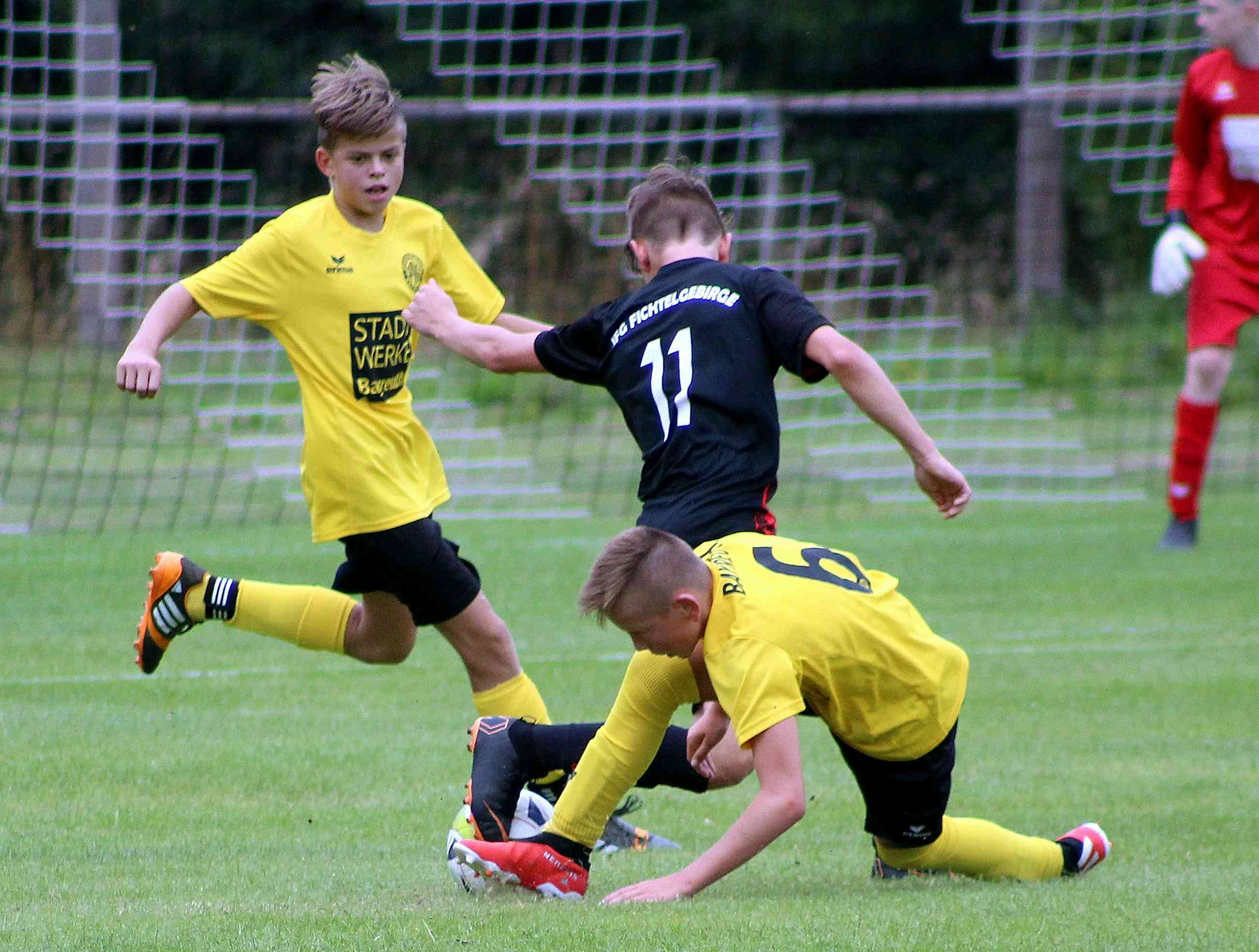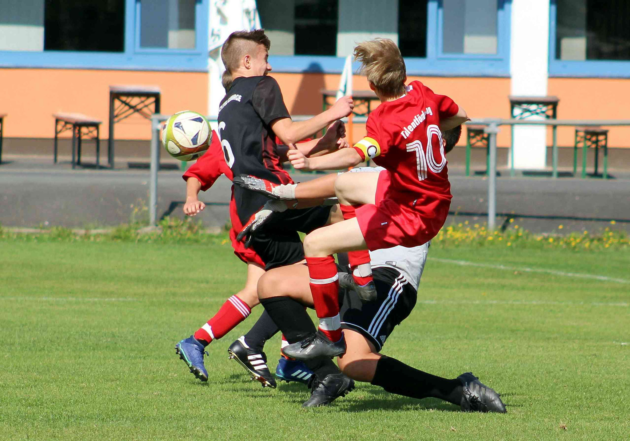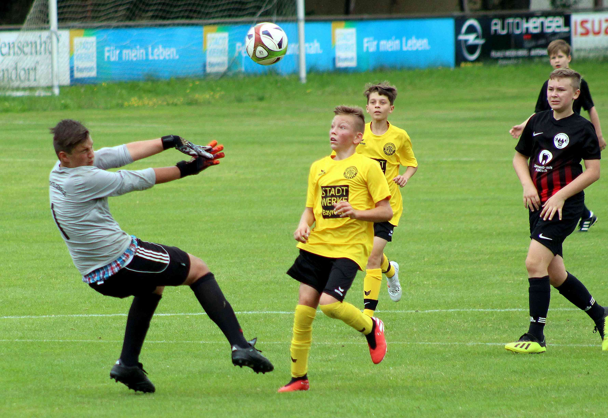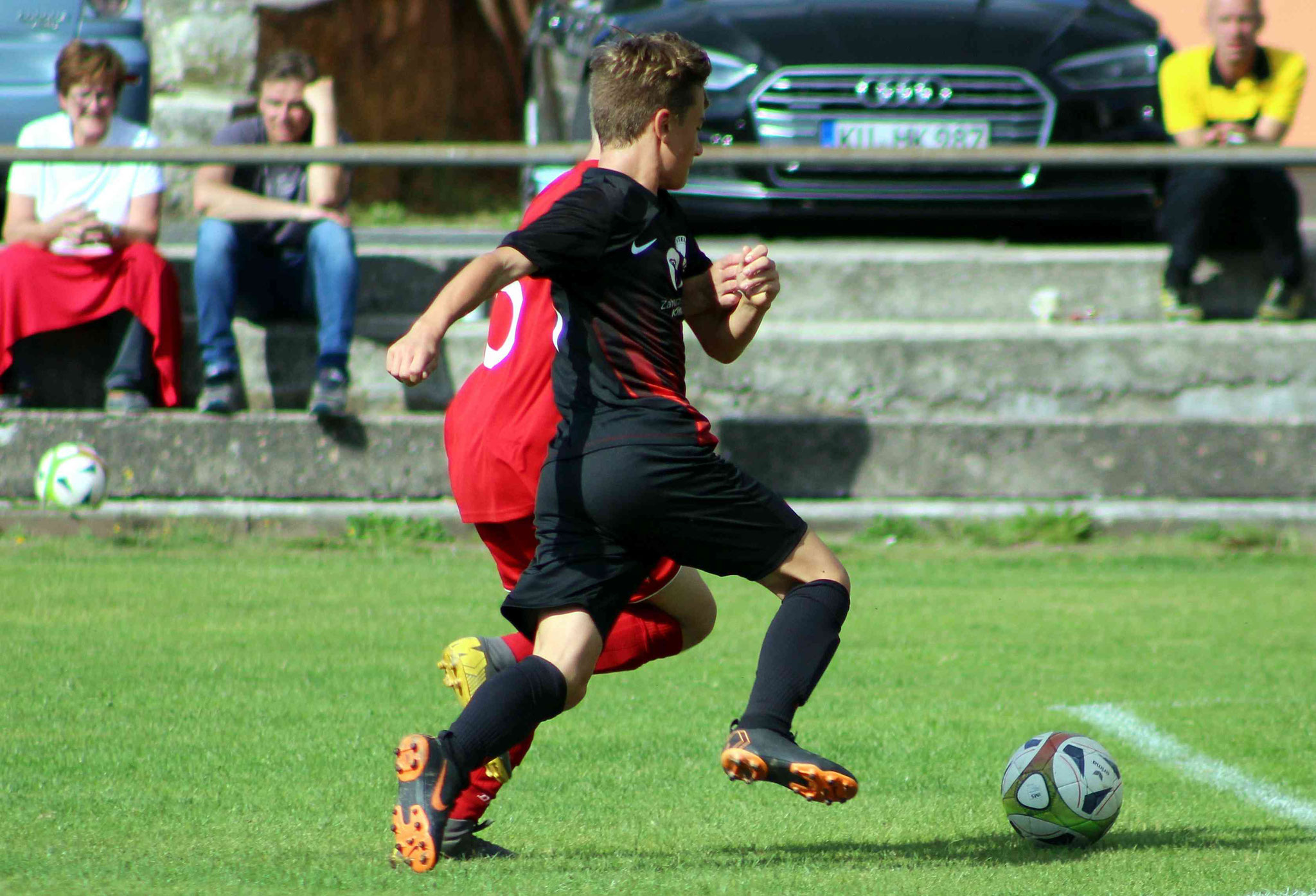 Anscheinend war das allen Akteuren bekannt, denn beide Mannschaften suchten von Anfang an ihr Heil in der Offensive. Beide Teams hatten eine Chance nach der anderen. Eine Unachtsamkeit der Kirchenlaibacher nutzte Tom Herrmann in der 17. Minute zum 0:1 für die Gäste. Wie es in dieser Spielzeit schon öfter der Fall war, zog sich die JFG nach dem Führungstor zurück und kassierte folgerichtig den Ausgleich zum 1:1. Bis zur Pause hatten beide Mannschaften noch genug Torgelegenheiten um in Front zu gehen. Was folgte, war eine energische Kabinenansprache zur Fehlervermeidung und neue Motivation für den zweiten Durchgang. Die zweite Halbzeit glich nahezu der ersten Hälfte. Nur jetzt konnte unser Team die Gelegenheiten auch in Tore ummünzen. Paul Muckel (50.) und Lorenz Reb (60.) sorgten für den Endstand. Die letzten zehn Minuten spielte das Team den Vorsprung souverän nach Hause. Alles in allem ein verdienter Sieg für die JFG Fichtelgebirge. Glückwunsch an die Mannschaft zum Erreichen der Kreisfinalspiele. Am Kreisendspiel-Tag nehmen teil: JFG Steigerwald, JFG Bayreuth-West/Neubürg, DJK DonBosco Bamberg und die JFG Fichtelgebirge.