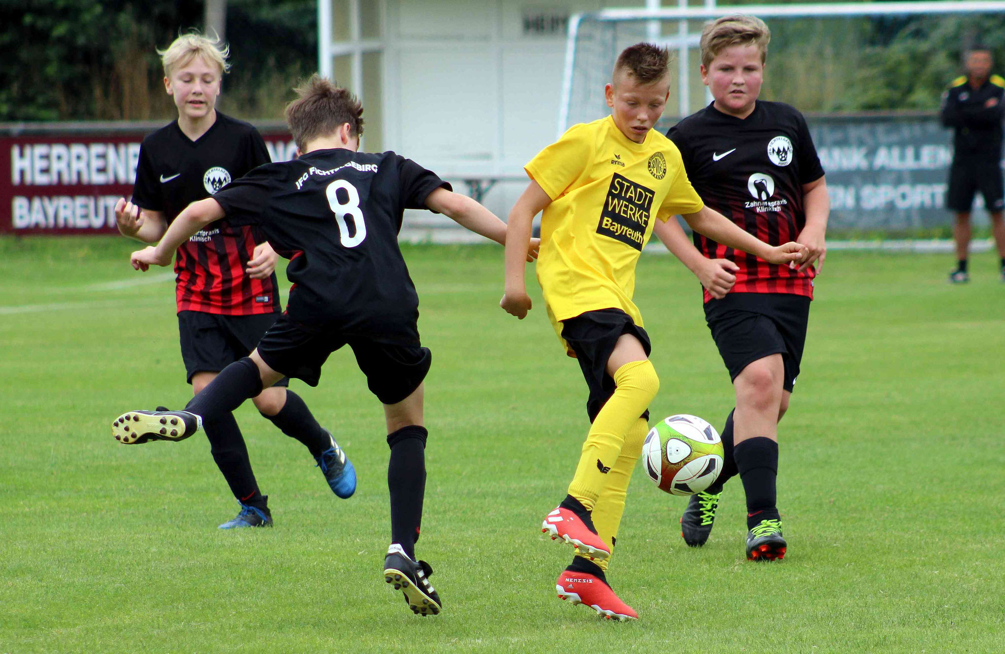 Im letzten Vorbereitungsspiel unserer U15 empfing man die (SG) TSV St. Johannis Bayreuth/TSV Bindlach. Die ersten zehn Minuten war die Partie relativ ausgeglichen ohne das man sich vor dem Tor weh getan hätte. Dann aber legte die Heimelf los und kombinierte sich mehrmals in den gegnerischen Strafraum. Die Chancen wurden zu diesem Zeitpunkt noch fahrlässig vergeben. In der 25. Minute dann das inzwischen hochverdiente 1:0 für die Fichtelgebirgler. Weiter den Weg nach vorne suchend erhöhten sie bis zum Pausentee auf 3:0. Den Beginn der zweiten Hälfte wohl verschlafen, fing sich die Heimelf das 3:1 ein. Nur eine Minute später wurde der alte Abstand wieder hergestellt. Die Kanzer Bären hatten immer wieder Chancen das Ergebnis zu lindern, doch die Torgelegenheiten wurden leichtfertig vergeben. Unsere Jungs spielten weiter nach vorne und schraubten das Ergebnis auf 7:1. Das lässt für den nächsten Samstag hoffen, wo unsere Jungs im ersten Pflichtspiel beim FC Eintracht Bamberg III spielt. Viel Glück!