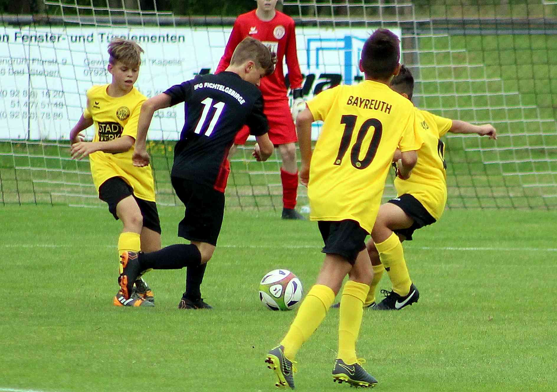 Gegen den Tabellendritten der Vorsaison in der Bezirksoberliga war klar, das diese Begegnung kein Selbstläufer wird. Gespickt mit einigen Bayernliga Spielern sind die Wagnerstätter nach Weidenberg gereist. Unser Team hat alles gegeben, aber die Gelb-Schwarzen waren technisch, wie läuferisch in allen Belangen überlegen. Das Resultat hätte durchaus auch zweistellig ausfallen können, aber der umsichtige Schiedsrichter Martin Gebhardt erkannte viele Abseitsstellungen. Kein Vorwurf an unsere Mannschaft, die alles gegeben hat. Die SpVgg Bayreuth war ein übermächtiger Gegner und kein wirklicher Testpartner für die kommende Kreisliga-Saison. Da werden dann doch etwas kleinere Brötchen gebacken. Gut gemacht Jungs, Fiona und Trainer.