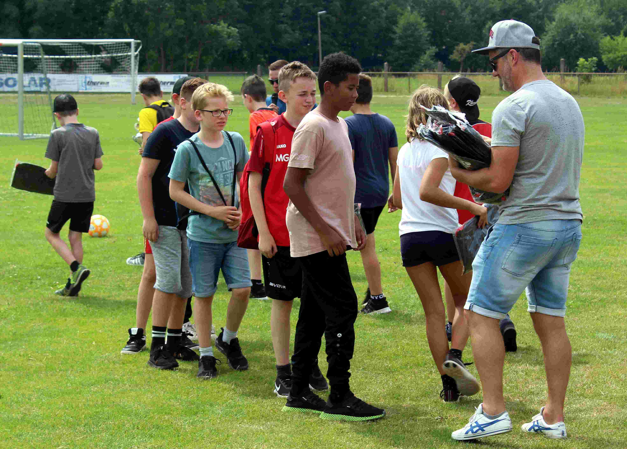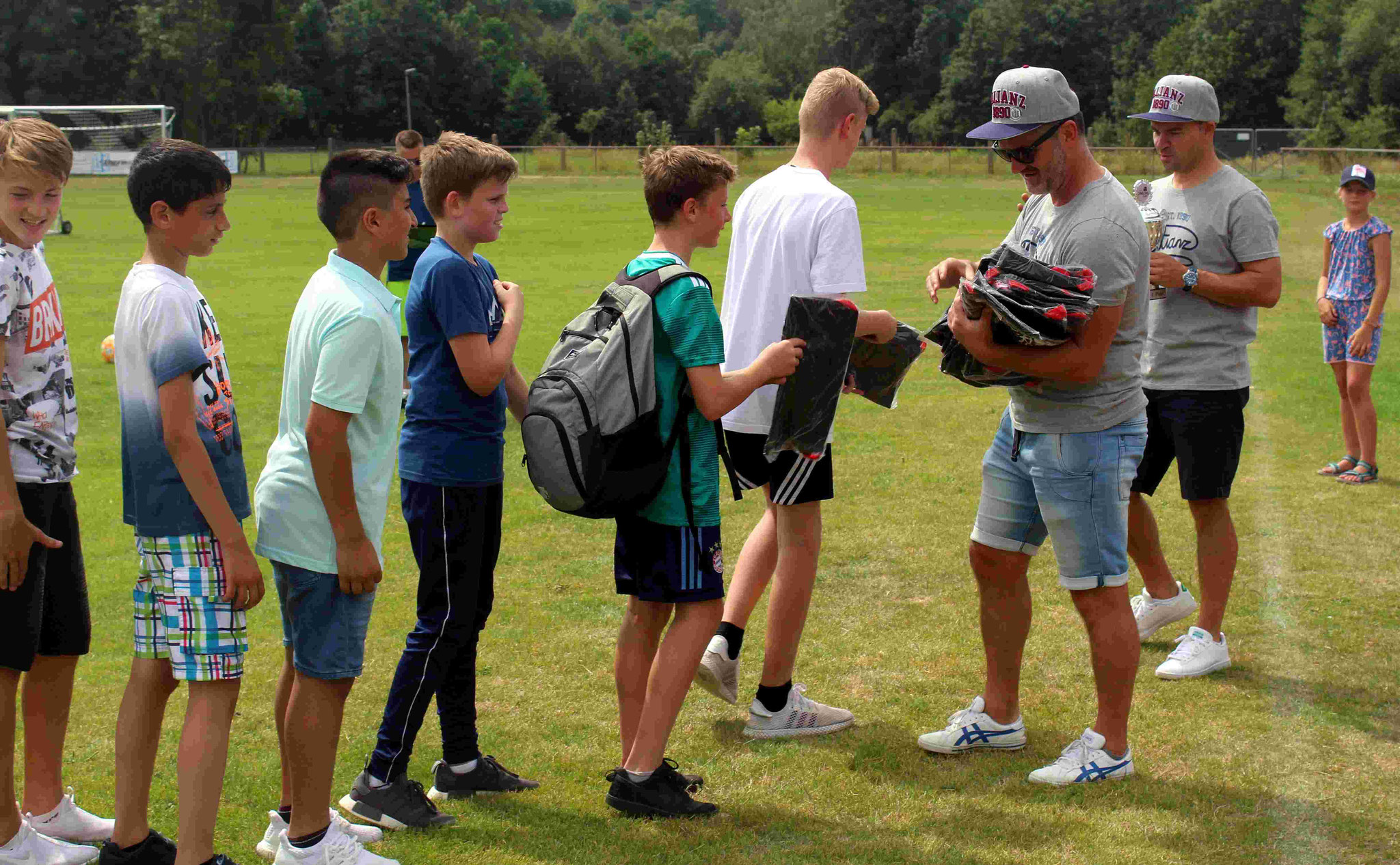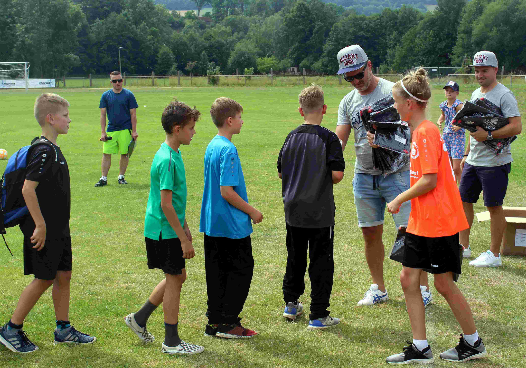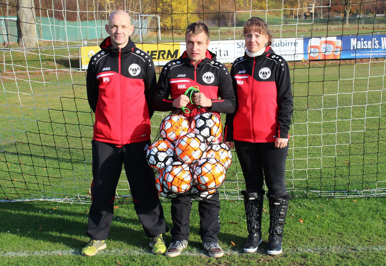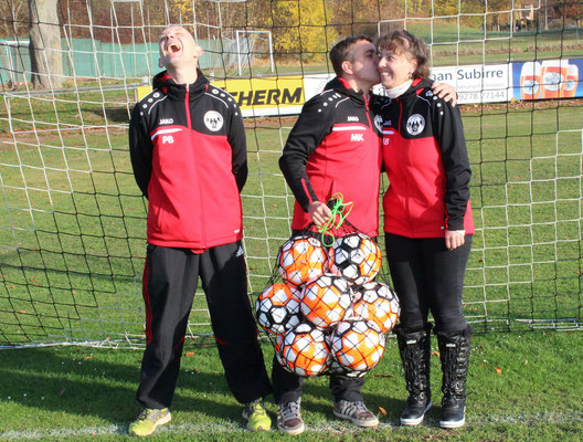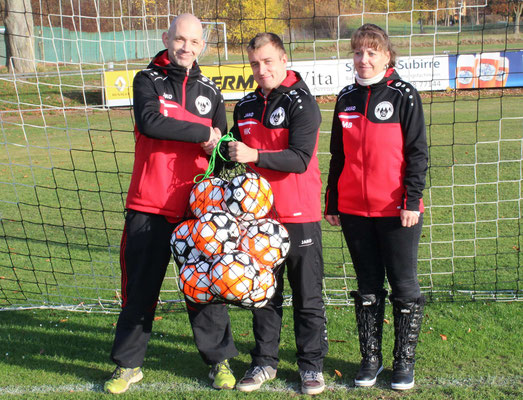 1. Vorstand Martin Kohlschmidt übergab die Bälle an das D-Jugend Trainerteam Peer und Michaela Beuth. Vielen Dank an alle, die fleißig beim Getränkekauf der JFG helfen. Zum Dank gab es noch einen Händedruck und ein Küsschen.