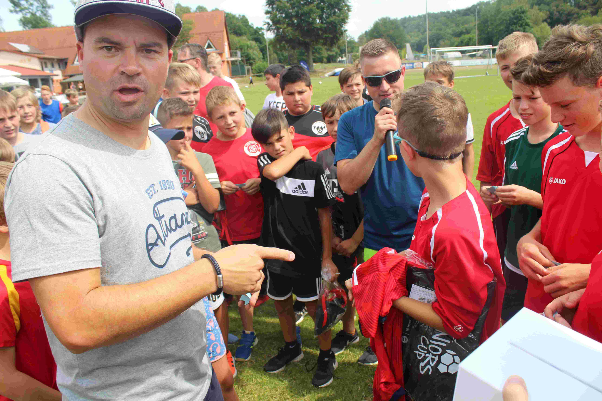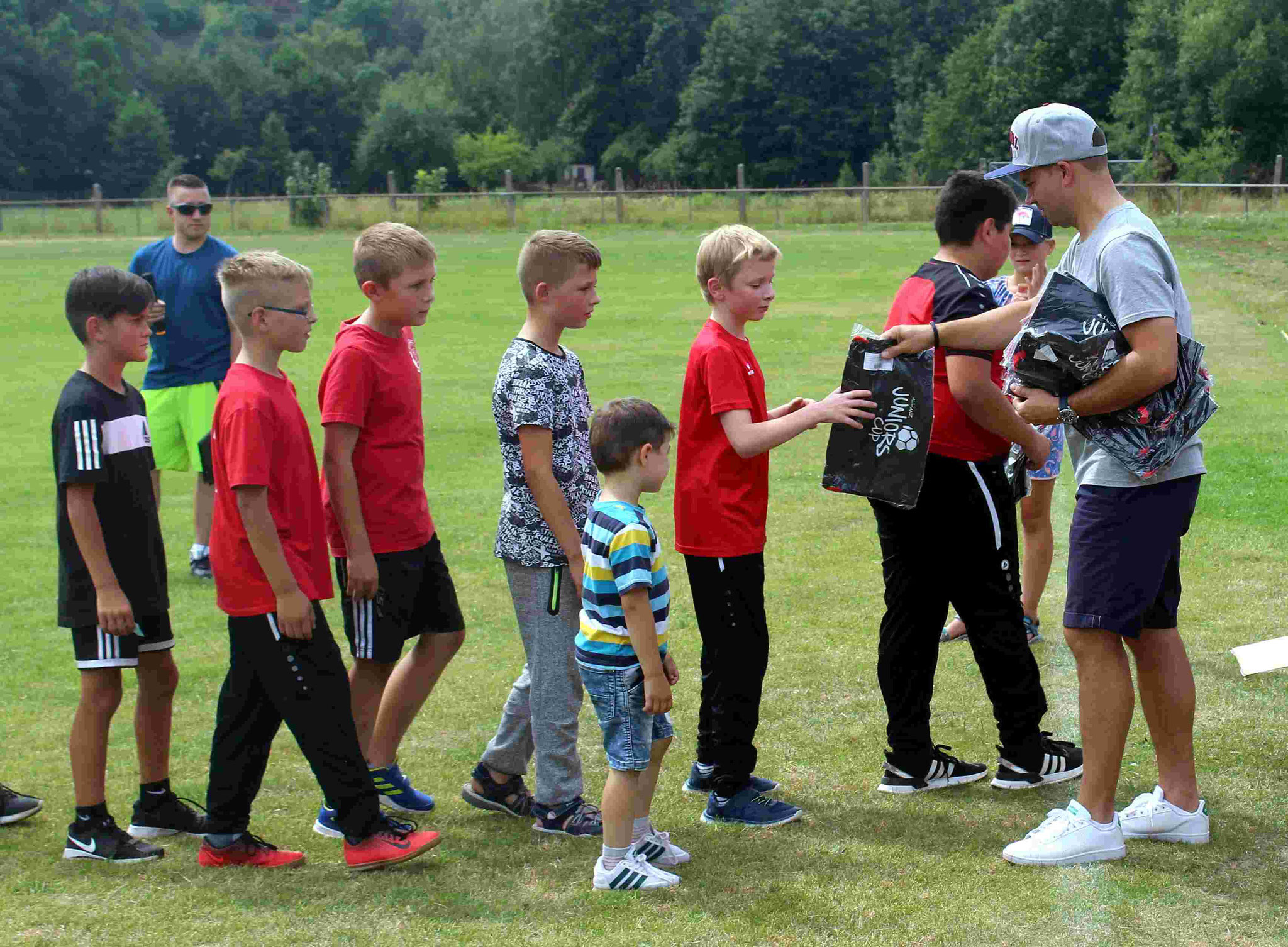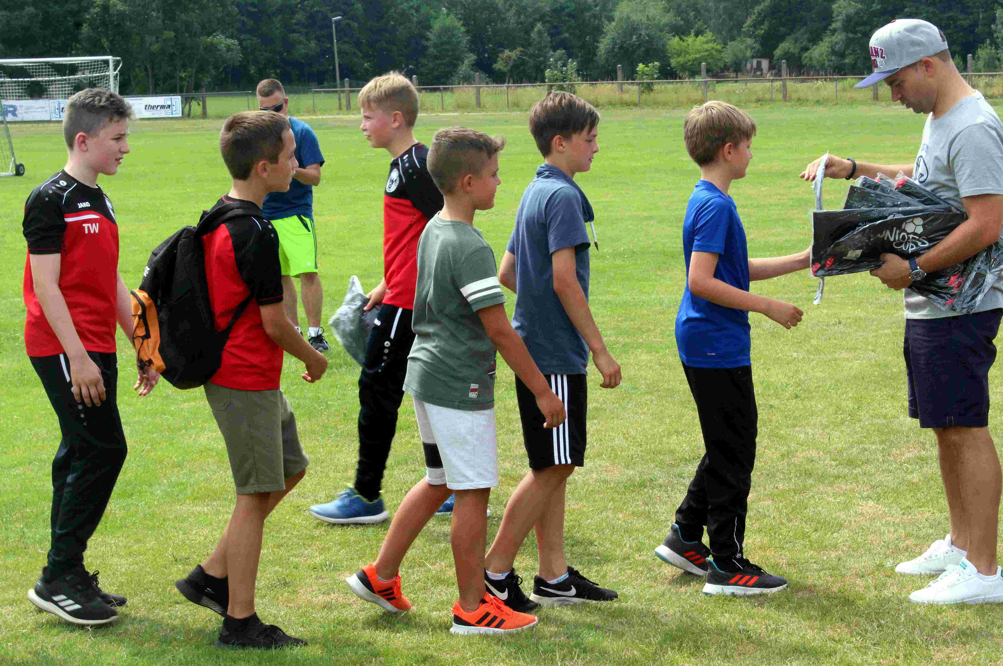 1. Vorstand Martin Kohlschmidt übergab die Bälle an das D-Jugend Trainerteam Peer und Michaela Beuth. Vielen Dank an alle, die fleißig beim Getränkekauf der JFG helfen. Zum Dank gab es noch einen Händedruck und ein Küsschen.