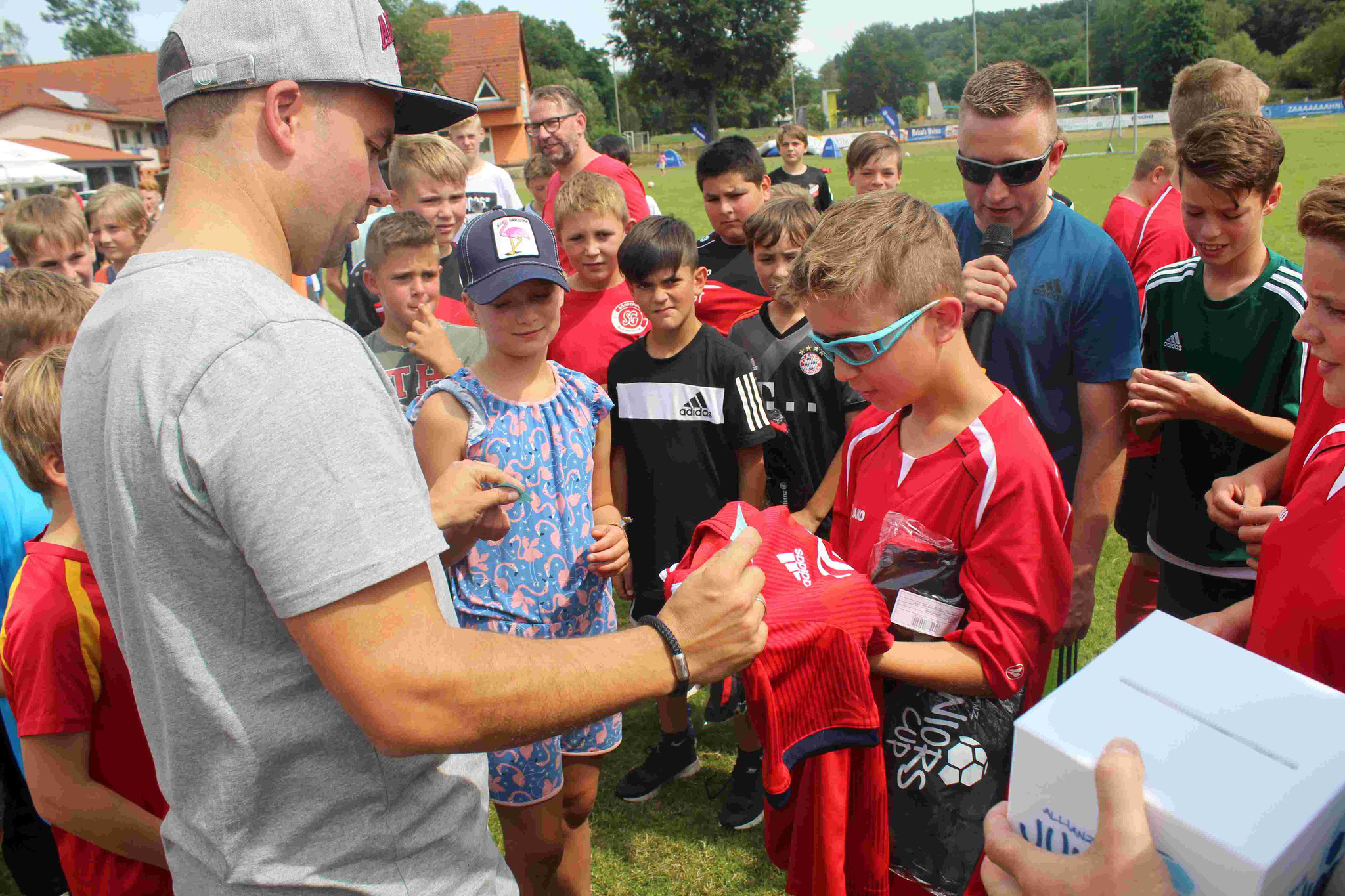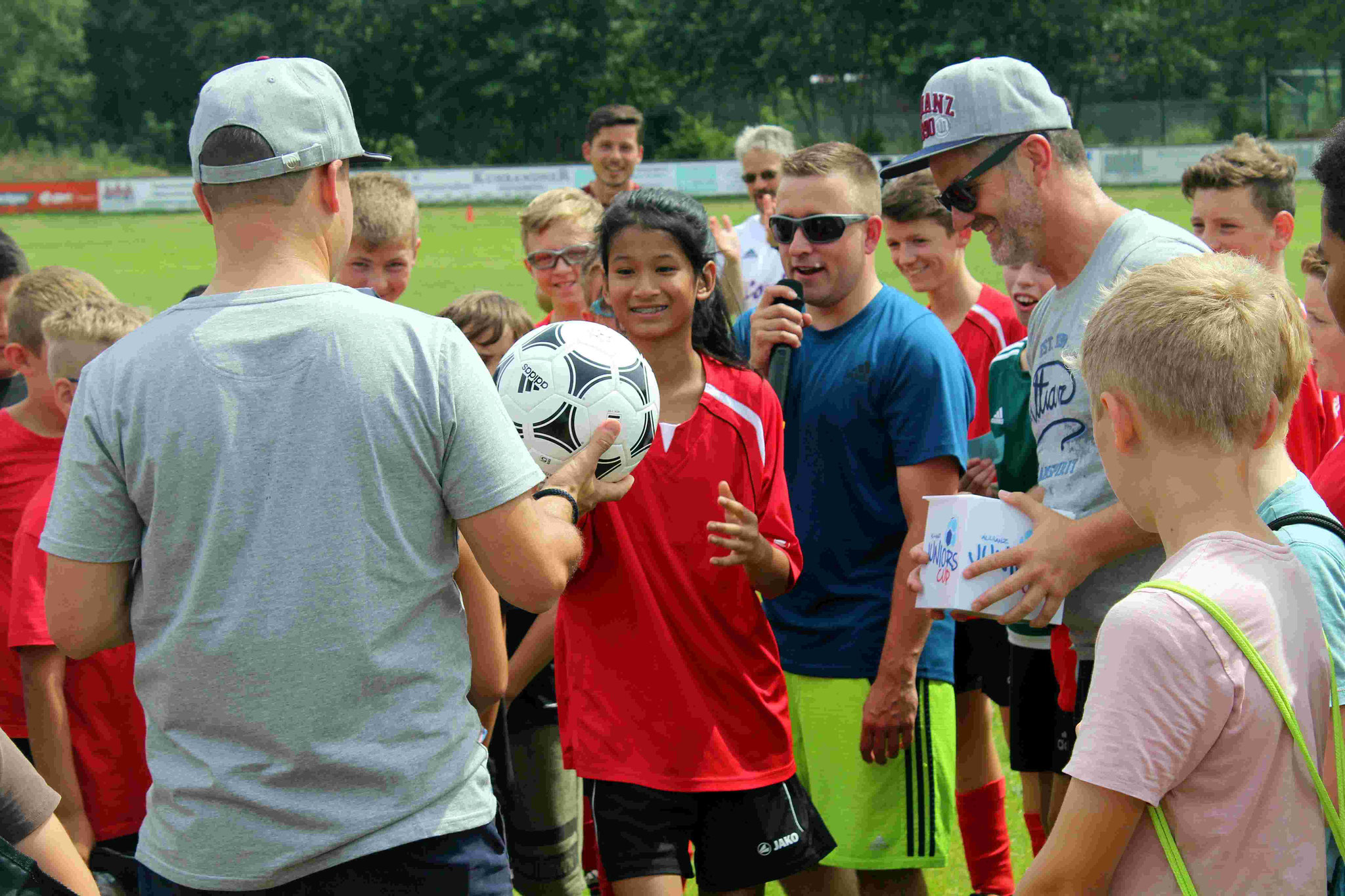 Unsere Glücksfee Emma zog die Lose der Tombola für vier Bälle und den Hauptpreis. Ein Trikot des FC Bayern München mit Originalunterschrift von Thiago.