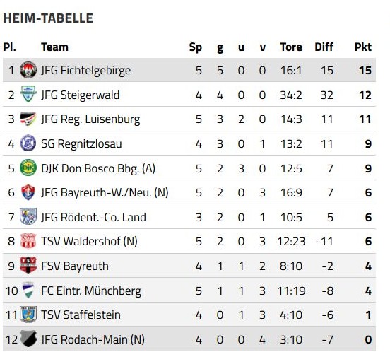Statistik: Das letzte Spiel, das die JFG Fichtelgebirge in Goldkronach verloren hat liegt weit zurück. Es war ein 1:5 gegen die JFG Steigerwald am 06.05.2017 (B-Jugend). Danach wurden in 19 Pflichtspielen 16 Siege und 3 Unentschieden eingefahren. Dieses Goldkronach ist schon ein gutes Pflaster.